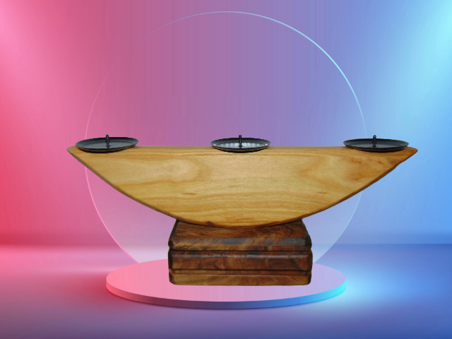 Tento svícen je ztělesněním řemeslné preciznosti a estetiky, která vzniká spojením dvou nádherných, kontrastních dřevin – světlého jasanového dřeva a sytého, tmavého ořechového dřeva.