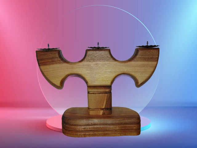 Proměňte svůj interiér v oázu klidu a elegance s naším trojramenným svícnem, který je dílem ruční práce. Svícen je vyroben z exkluzivního masivního ořechového dřeva, které patří k nejžádanějším materiálům díky své stabilitě a nádherné sytě hnědé barvě s výraznou kresbou.